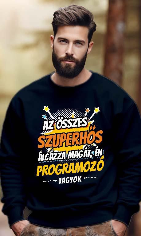 Programozó férfi pulóver – Egy programozó számára tökéletes ajándék lehet egy kényelmes póló vagy pulóver, amely büszkén hirdeti: „Szuperhős Programozó”. Ha inspiráló dekorációt keresel az irodába vagy az otthoni munkasarokba, egy stílusos vászonkép vagy poszter garantáltan feldobja a környezetet. Az ujjatlan póló és a baba body humoros és különleges meglepetés egy programozó számára, aki kódsorokkal formálja a digitális világot. Egy praktikus vászontáska pedig tökéletes választás, hogy mindig kéznél legyen a laptop, a jegyzetfüzet és a töltő. Válassz prémium minőségű termékeink közül, hogy a programozó szakma iránti szenvedély és kreativitás mindig szem előtt legyen!